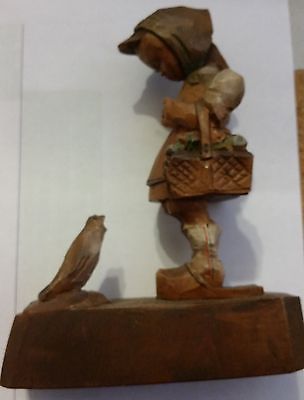 Title (ebay affiliate link): DUTCH GIRL with BIRD WOOD CARVED possible BRIENZ Black Forest HUMMEL ANRI STYLE