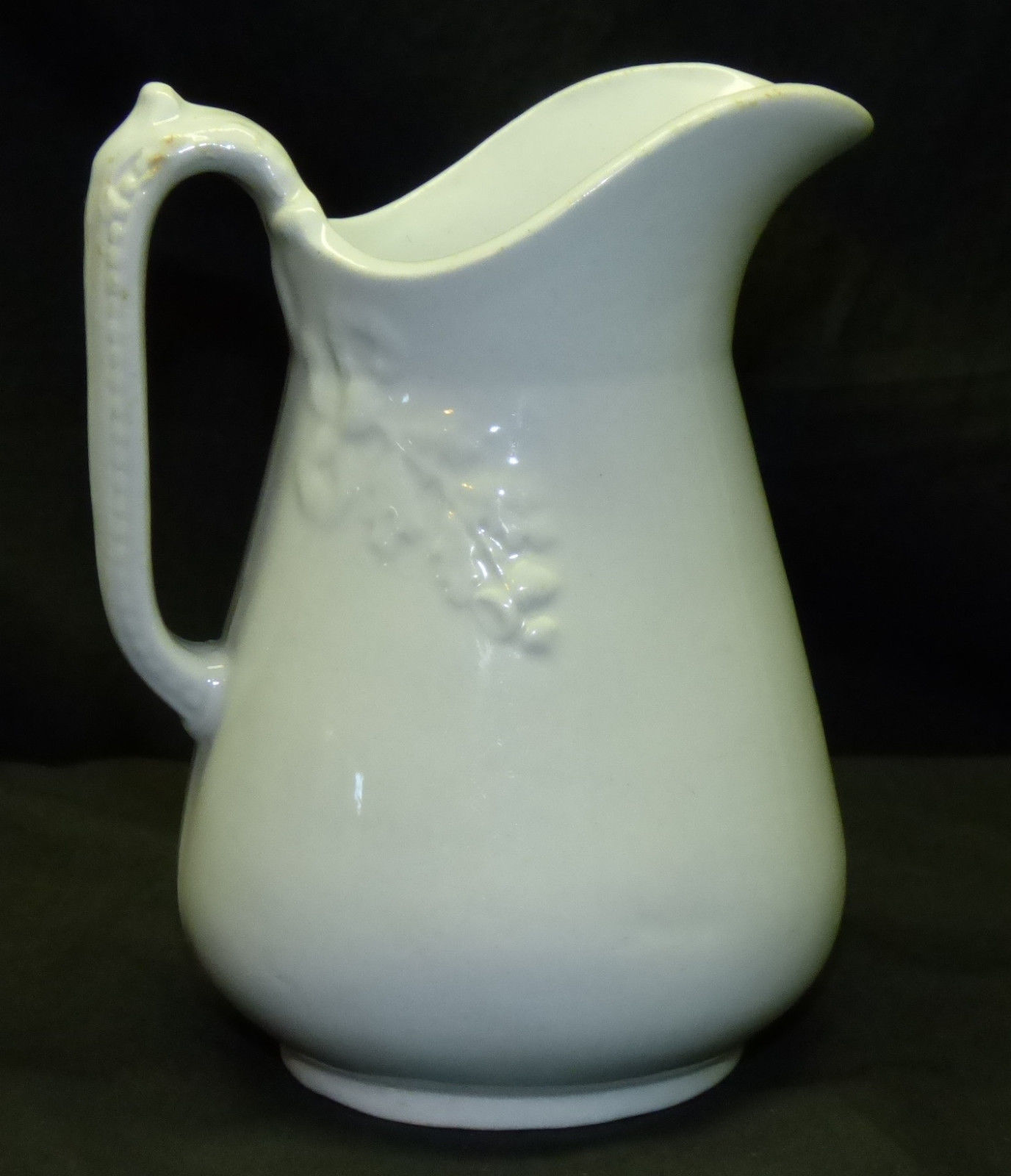 Old Corn Burslem England White Ironstone 6" Creamer Pitcher w Oak Leaf Acorn Bow