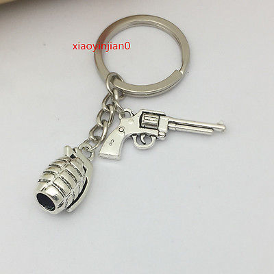 New Antique silver 3D Military Grenade + Gothic metal gun Pendant Keychain