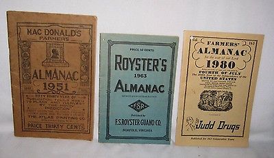 Title (ebay affiliate link): 3 Vintage Almanacs - 1980 Farmers, 1963 Royster''s and 1951 Mac Donald''s