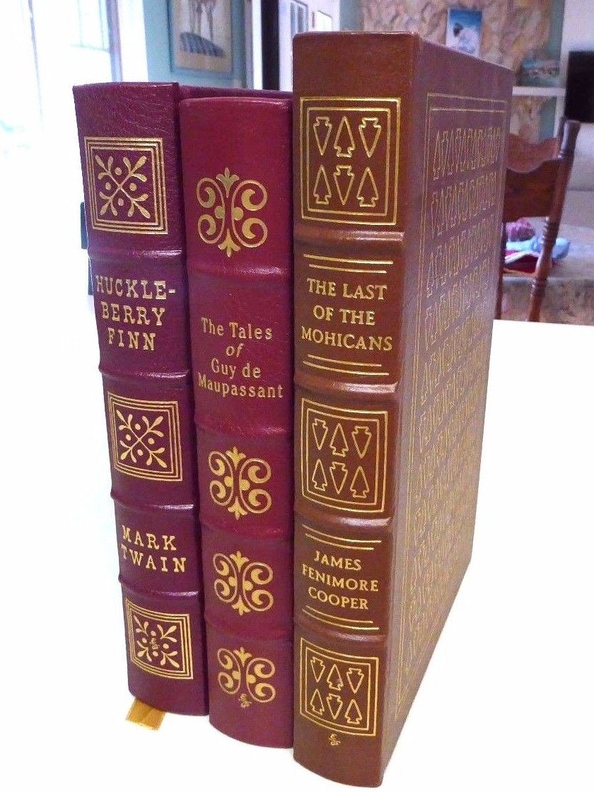Title (ebay affiliate link): 1981 Easton Press Huck Finn Last of Mohicans Guy de Maupassant leather bound