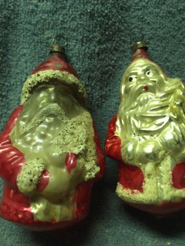 Title (ebay affiliate link): 2 Antique Vintage Glass Santa Ornaments One Has Mica Snow