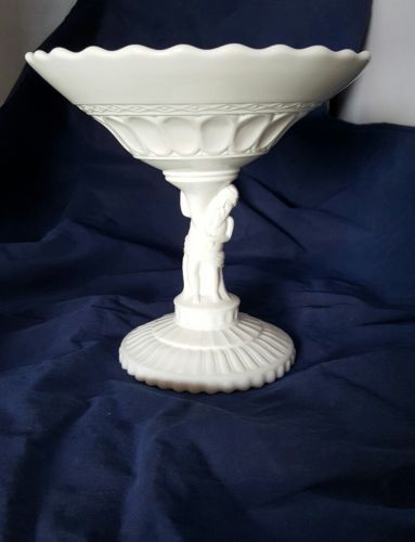 Antique Milk Glass Atterbury Atlas Scalloped Edge Compote