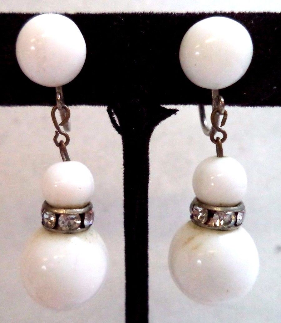 Title (ebay affiliate link): STUNNING VINTAGE ESTATE MILK GLASS RHINESTONE SCREW BACK 1 1/2" EARRINGS!! 7308B