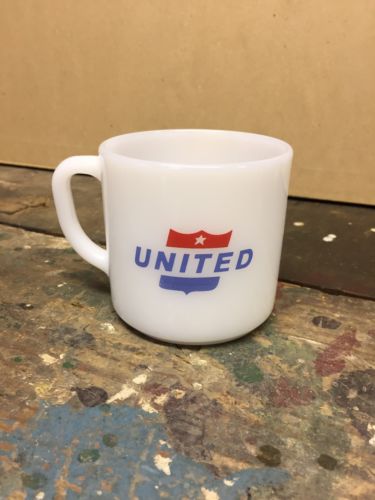 Title (ebay affiliate link): Vintage Fly the Friendly Skies of United Advertising Milk Glass Mug SUPER RARE.!