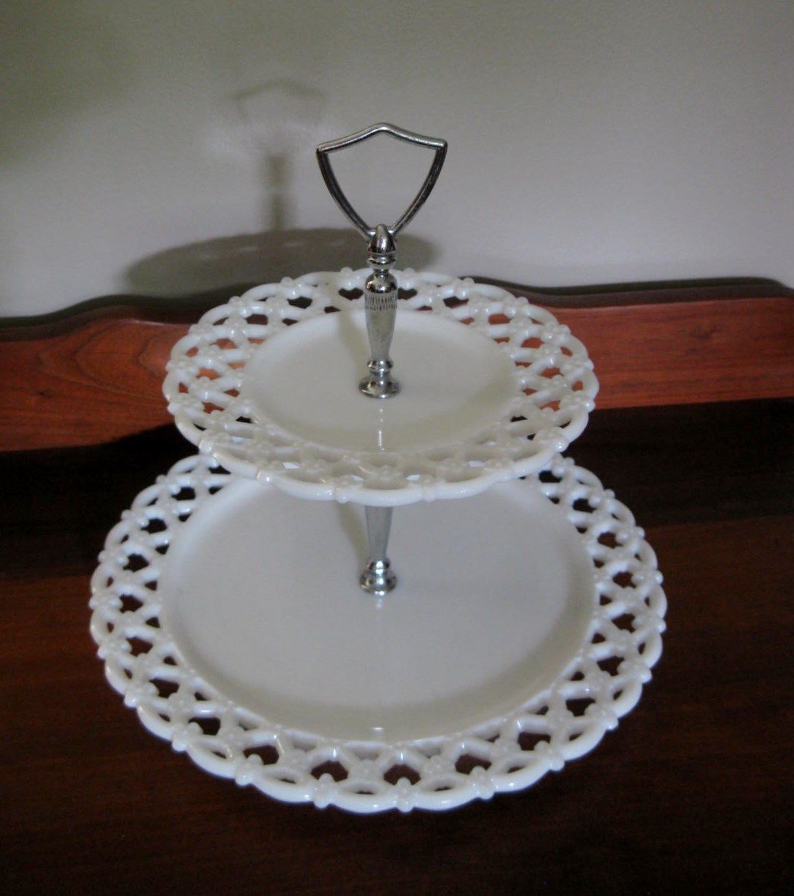 Title (ebay affiliate link): Vintage Westmoreland Milk Glass Forget Me Not Two Tier Tidbit Tray