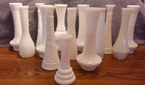 Lot of 15 Milk Glass Vases 6" to 9" EUC Weddings Showers