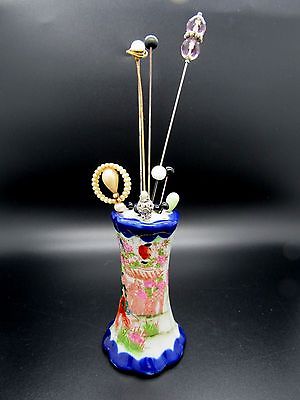 Title (ebay affiliate link): VINTAGE JAPAN GEISHA GIRL HAT PIN HOLDER & 13 PINS MOURNING milk glass MORE