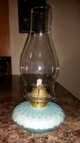 Title (ebay affiliate link): Eapg TEARDROP ENCASED MILK GLASS BLUE SATIN KEROSENE OIL LAMP