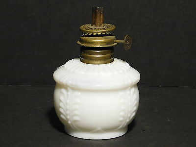 Antique Genuine Milk Glass Miniature Oil Lamp, Finger Lamp, Kerosene Lamp