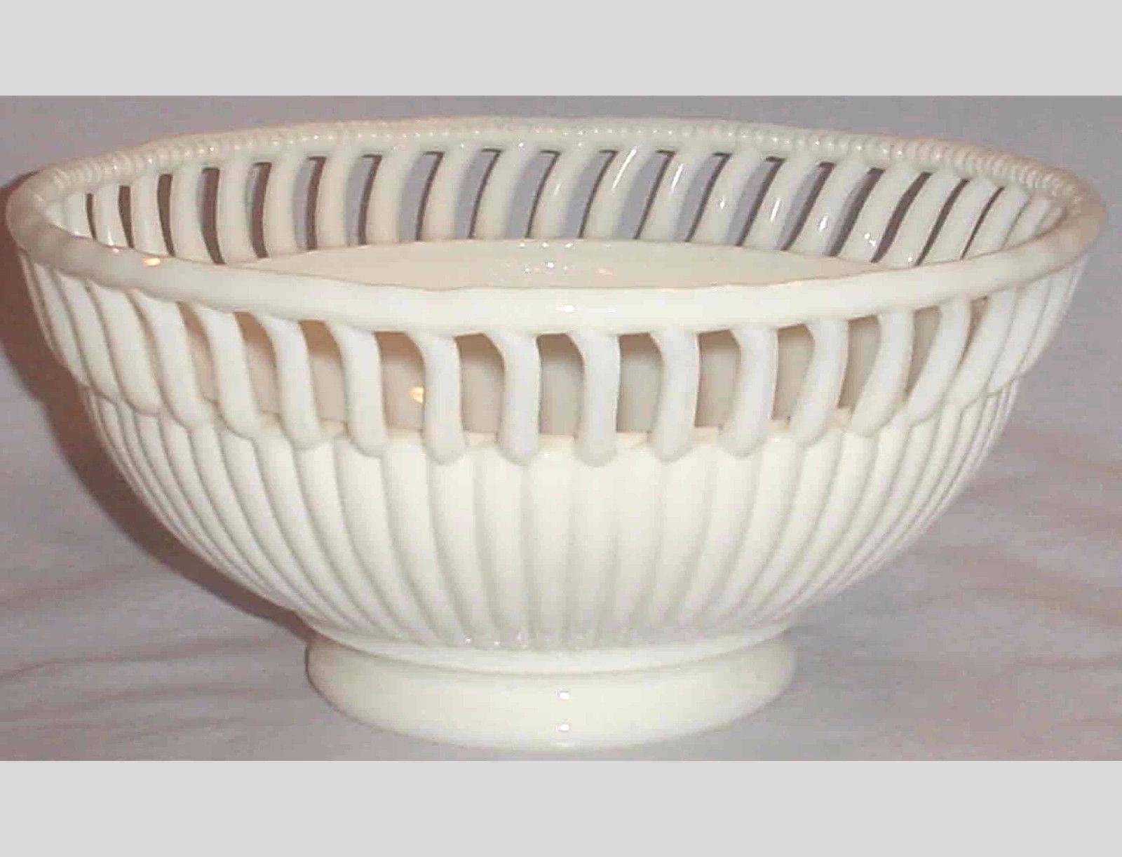 Title (ebay affiliate link): ESTATE WHITE MILK GLASS FRUIT BOWL LACY or RETICULATED EDGE 4" tall x 9" across
