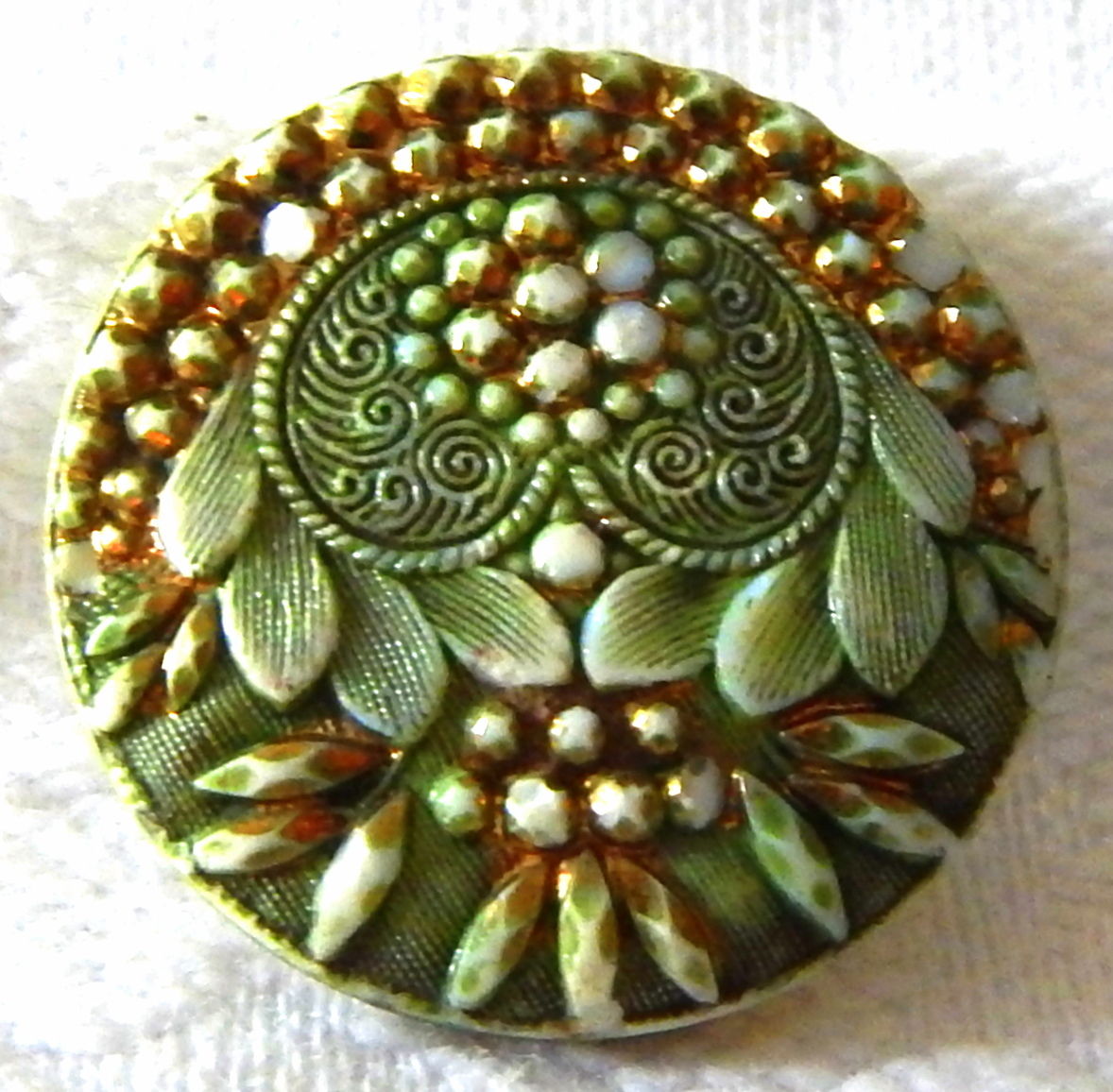 Title (ebay affiliate link): 1" ANTIQUE 1880''S VICTORIAN LACY MILK GLASS BUTTON w/VERDIGRIS ENAMEL+GOLD LUSTR