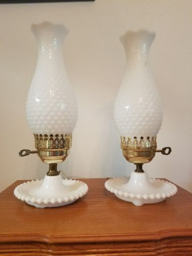 Vintage pair of electric Milk Glass table lamps
