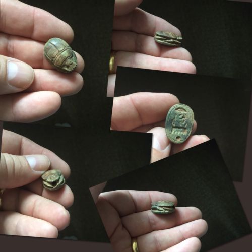 Title (ebay affiliate link): ANCIENT EGYPTIAN FAIENCE SCARAB BEETLE WITH HIEROGLYPHS, MIDDLE KINGDOM.