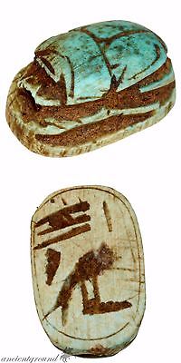 Title (ebay affiliate link): CIRCA 300 BC PTOLEMAIC PERIOD BLUE FAIENCE BEAD SEAL SCARAB