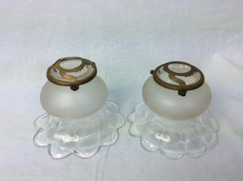 Title (ebay affiliate link): PAIR OF ANTIQUE FROSTED & CUT GLASS LAMP SHADES WITH ORIGINAL BRASS GALLERIES