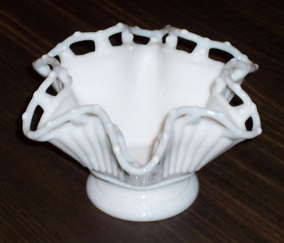OPEN LACE MILK GLASS CANDY DISH BOWL
