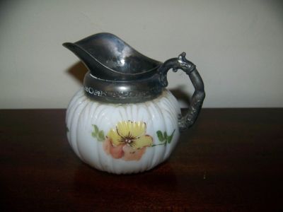 Vintage Milk Glass Handpainted Pitcher Pansies