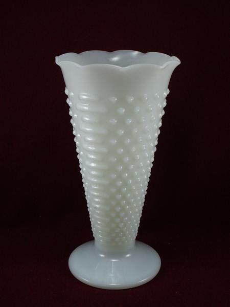 NICE LARGE CORNING "FIREKING" MILK GLASS BUBBLE VASE.