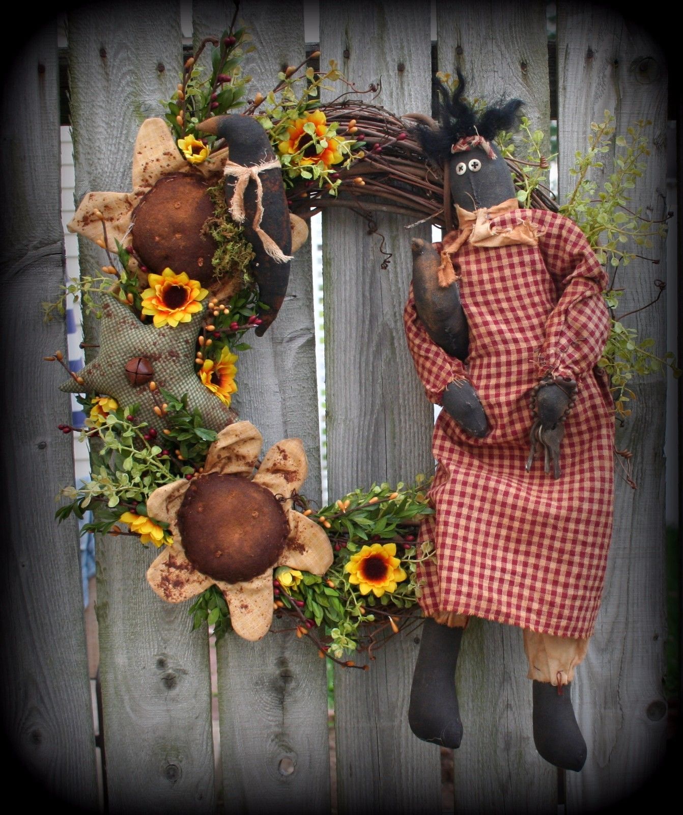 Title (ebay affiliate link): Primitive Sunflower & Black Folk Art Doll Wall/Door hanger