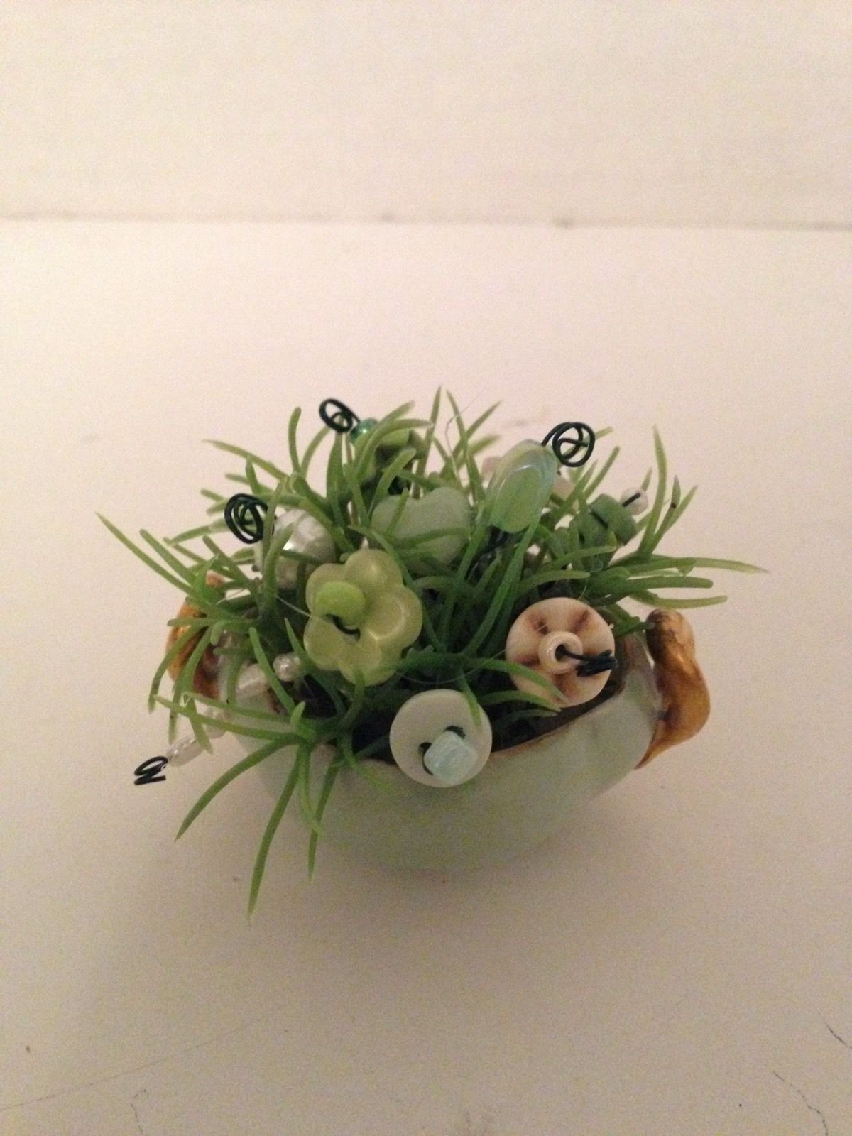 Mini Button Bokay/VTG Porcelain Salt- Cottage chic prim country farmhouse Decor