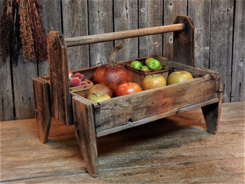Title (ebay affiliate link): Antique Rustic Old Farmhouse Carpenter Tool Box Carrier Footed Garden Tote AAFA