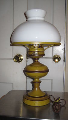 1970's Toleware Table Lamp w/Milk Glass Antique Shade