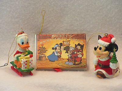 3 DISNEY CHRISTMAS ORNAMENTS MICKEY, DONALD and BOOK