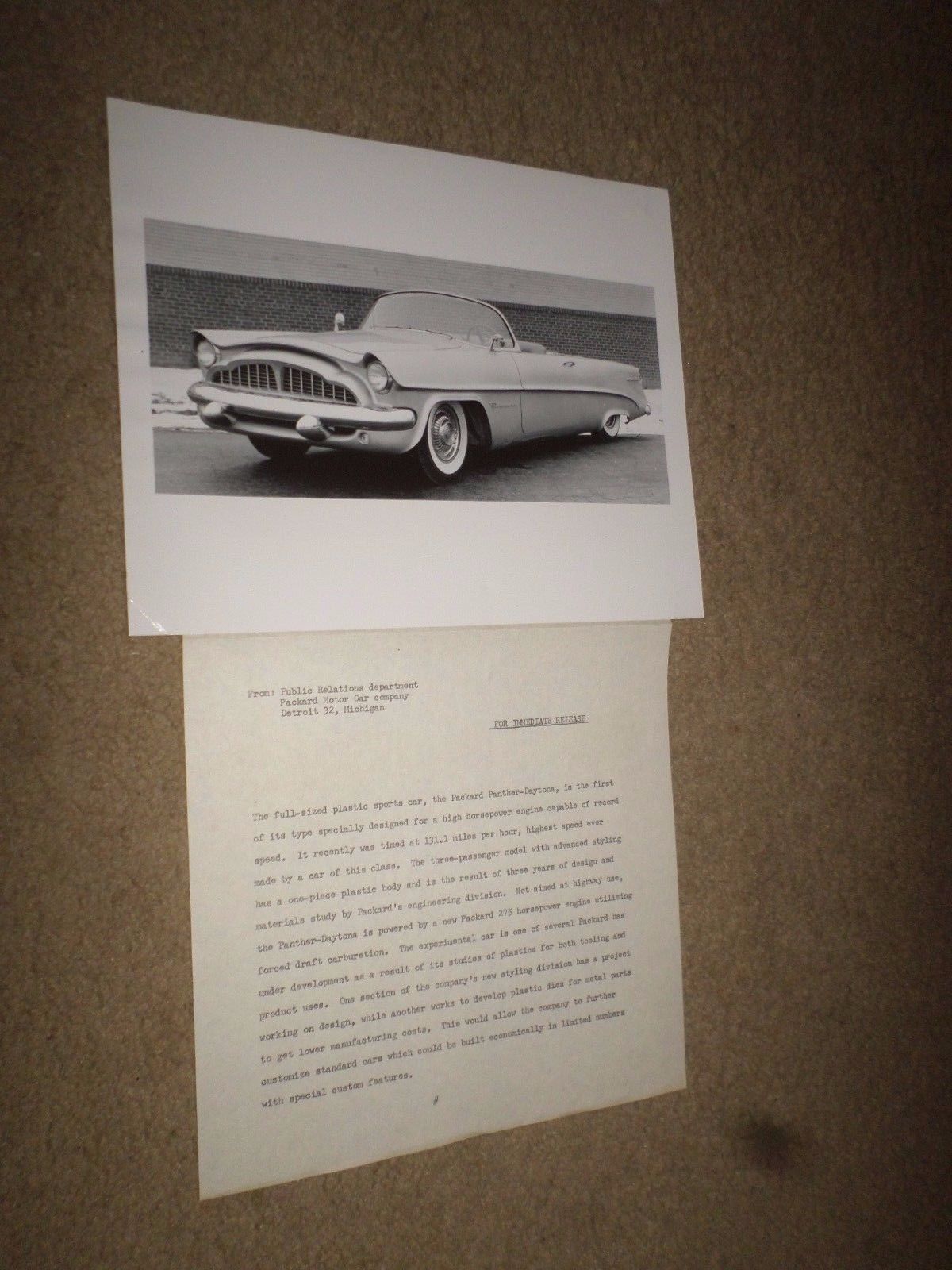 Title (ebay affiliate link): 1954 Packard "Panther-Daytona 3-Passenger Model" Car Dealer Sales Press Photo