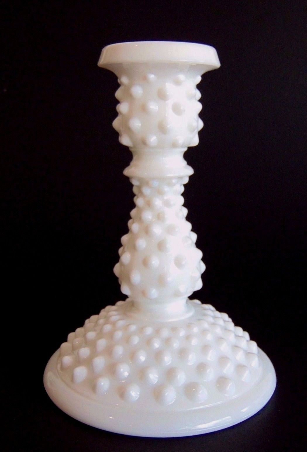 Title (ebay affiliate link): FENTON HOBNAIL WHITE MILK GLASS SINGLE CANDLE / LIGHT STICK HOLDER 6" -3674 -VTG