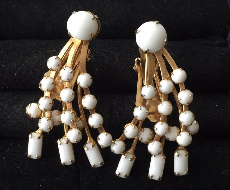 Title (ebay affiliate link): Vintage Earrings Clipon White Milk Glass Rhinestone Gold tone Jewelry lot l