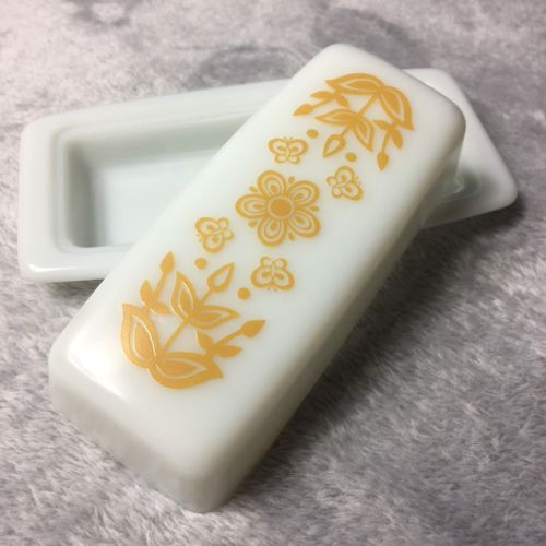Title (ebay affiliate link): Vintage Pyrex Milk Glass Butterfly Gold Butter Dish, Mint Condition