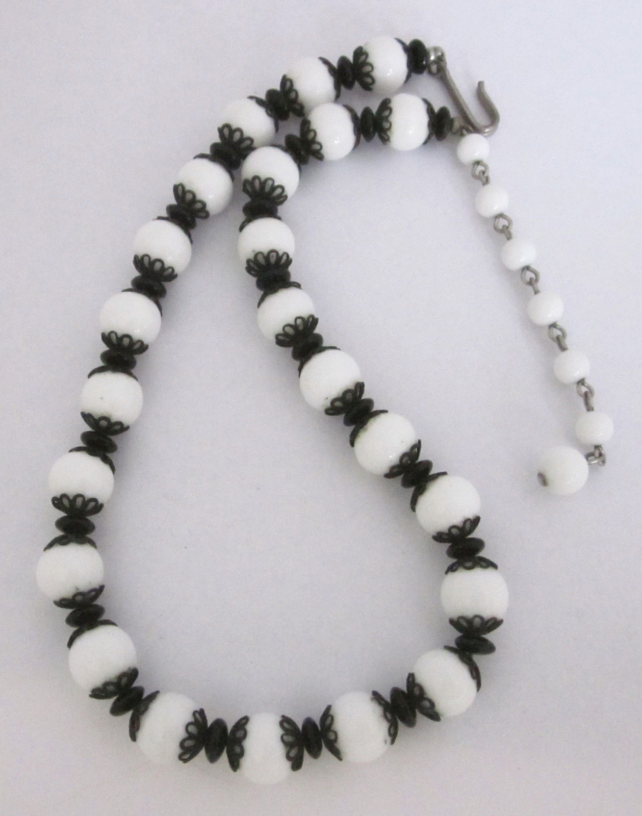 Vintage Milk Glass/Jet-Black Glass Bead Necklace