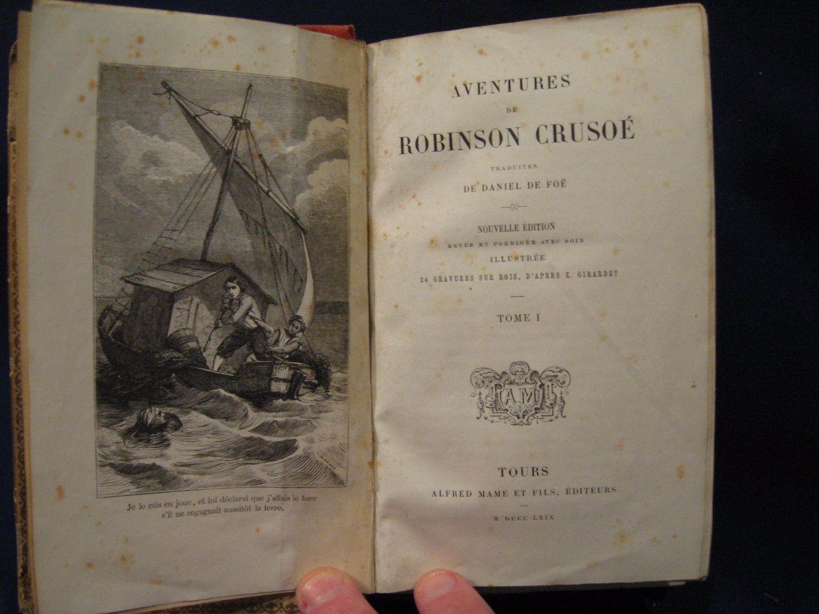 Title (ebay affiliate link): Vintage Aventures Adventures of Robinson and Crusoe De Daniel De Foe French 1869