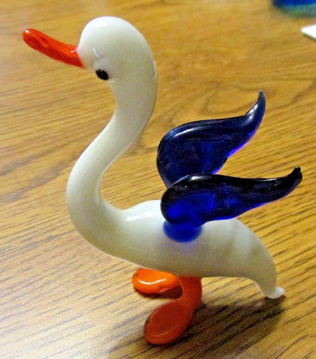 Title (ebay affiliate link): JAPAN ART GLASS SMALL SWAN FIGURINE COBALT, MILK GLASS & ORANGE # PR-556
