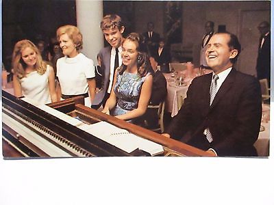 1972 RE-ELECT NIXON AGNEW POSTCARD PRESIDENT NIXON W/ FAMILY AT PIANO UNUSED