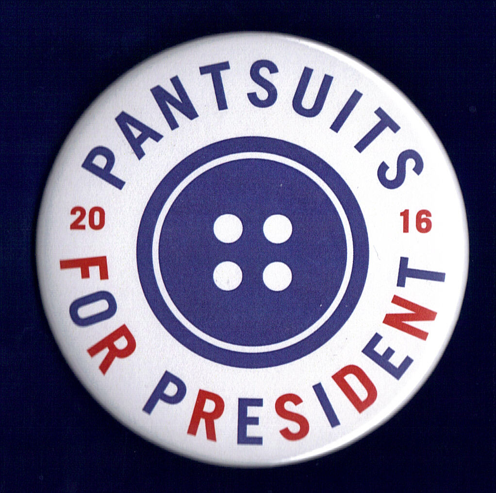Title (ebay affiliate link): 2016 Hillary Clinton 3"/ Official "Pantsuits for President" Campaign Button