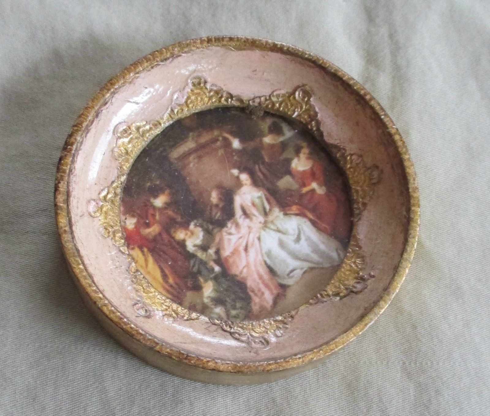Title (ebay affiliate link): VTG ROUND ITALIAN FLORENTINE Miniature Picture Frame Gilt Wood White & Pink