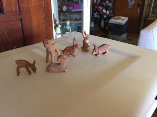 Erzgebirge Miniature Rabbits Deer Lambs Carved Wood Germany