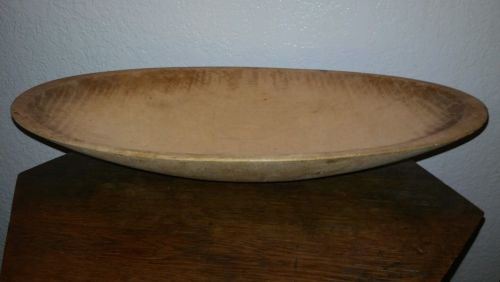 WOODEN WOOD BOWL ANTIQUE OBLONG TRENCHER FINGER SLOTS 17"