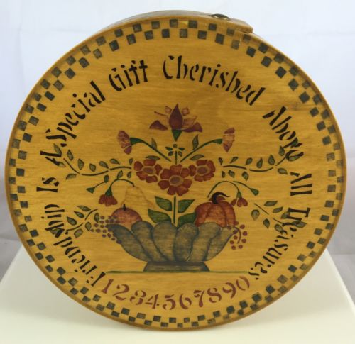 Title (ebay affiliate link): Vintage Artist Signed Hand Painted Friendship Primitive Theorem Wood Cheese Box