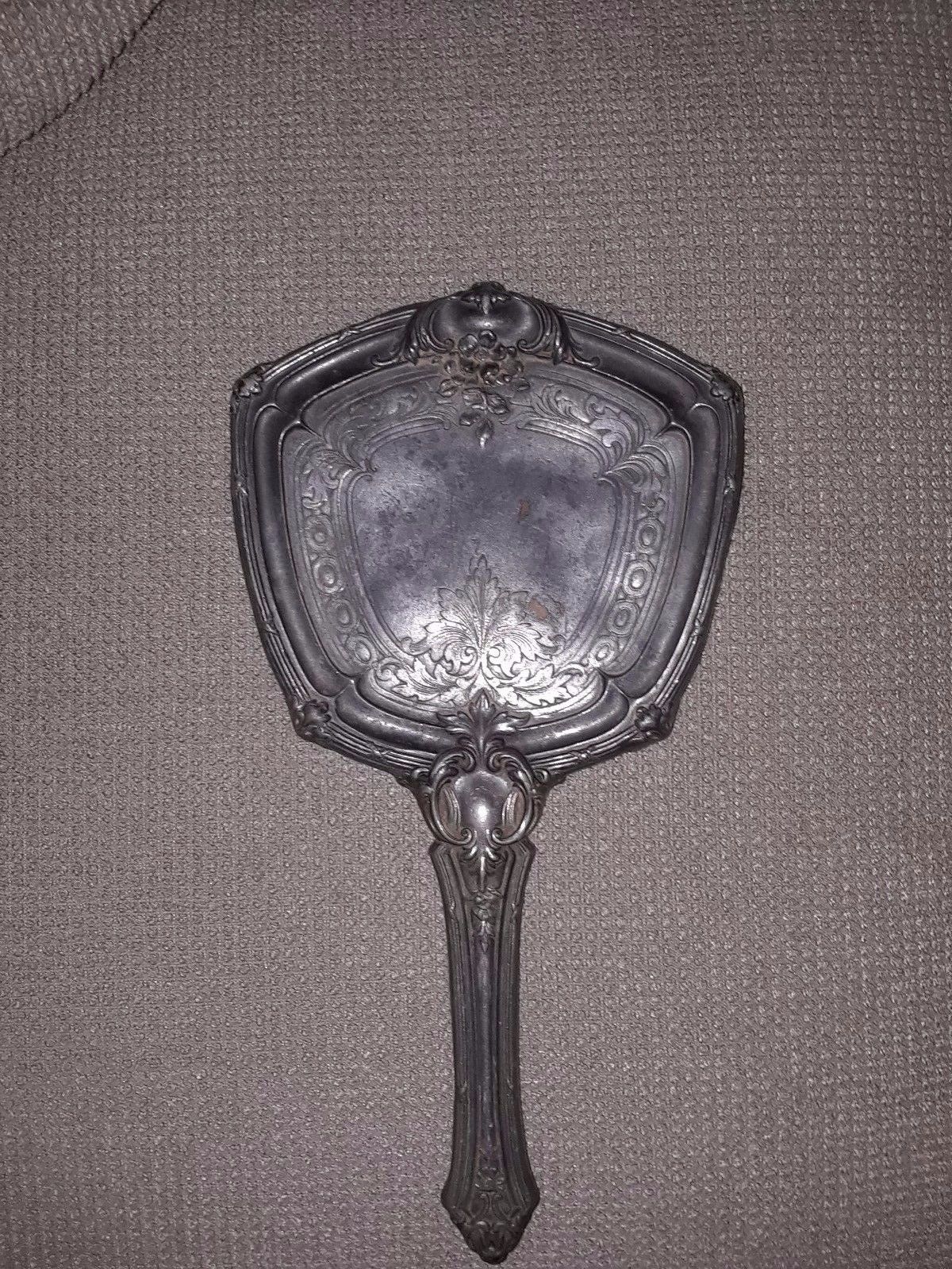 Antique Victorian/Edwardian Ornate Silver Plate Hand Mirror