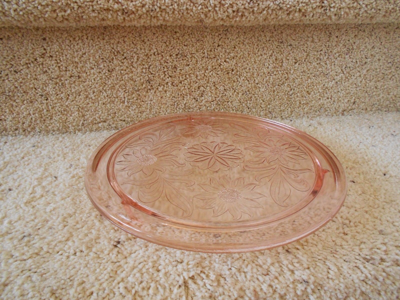 Title (ebay affiliate link): Vtg Pink Depression Glass Daisy Sunflower Design Footed Cake Plate Stand 10"