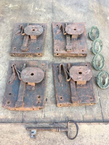 Antique Furniture Lock and Key Desk Dresser Drawer Cabinet Door Lock Set Of 4