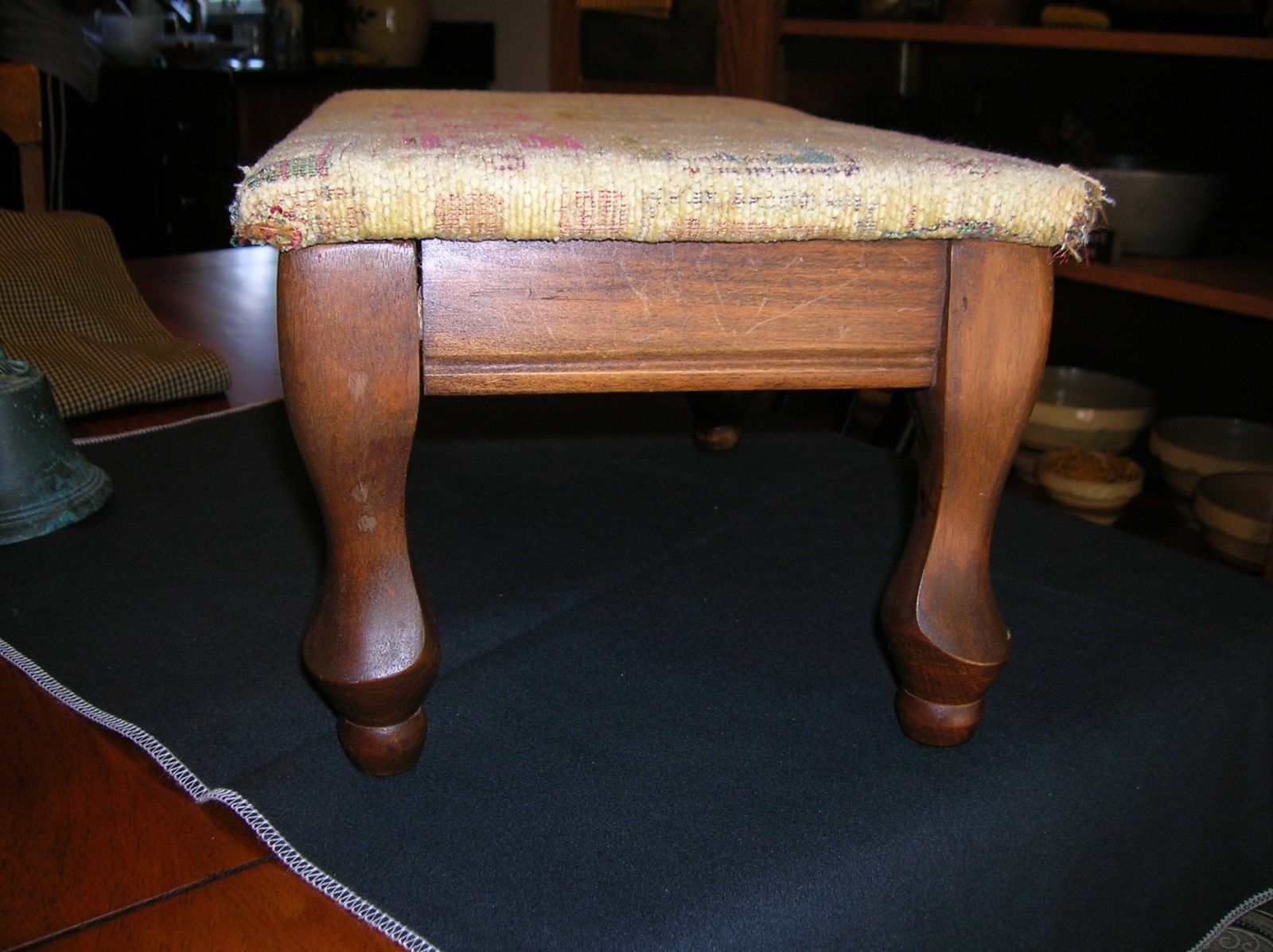 VINTAGE FOOT STOOL OTTOMAN WOOD LEGS BOTANICAL PRINT FABRIC FLOWERS LEAVES