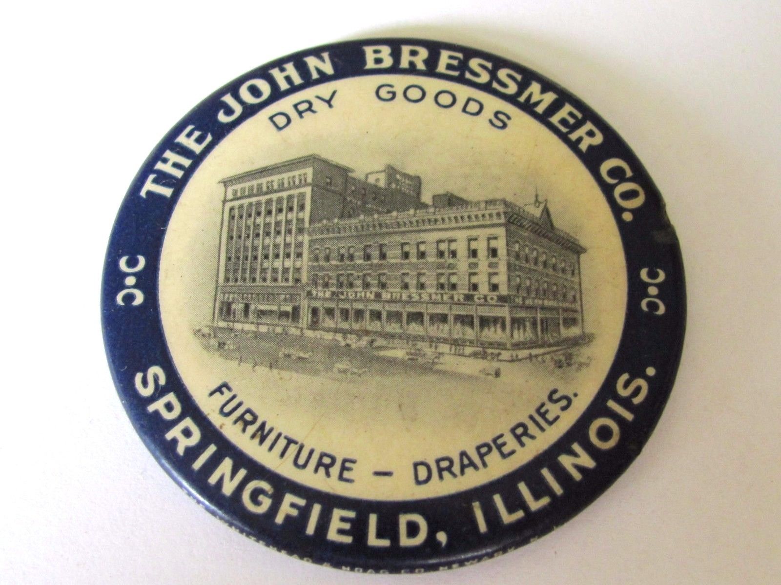 ANTIQUE ADVERTISING MIRROR J BRESSMER CO FURNITURE DRY GOODS SPRINGFIELD ILL