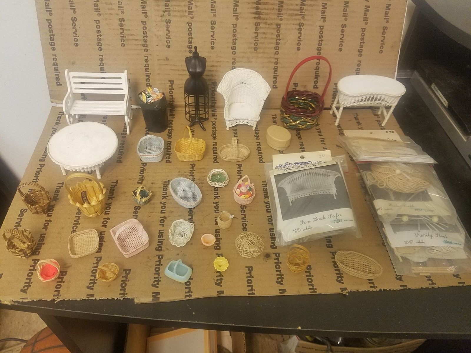LOT Antique/Vintage Look Dollhouse Miniatures. Wicker Furniture and Baskets.