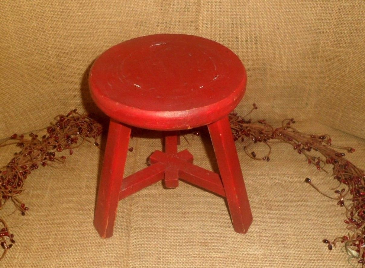 Title (ebay affiliate link): VINTAGE 3 LEGGED WOOD RED STOOL CHILDS MILKING PRIMITIVE COUNTRY HOME DECOR