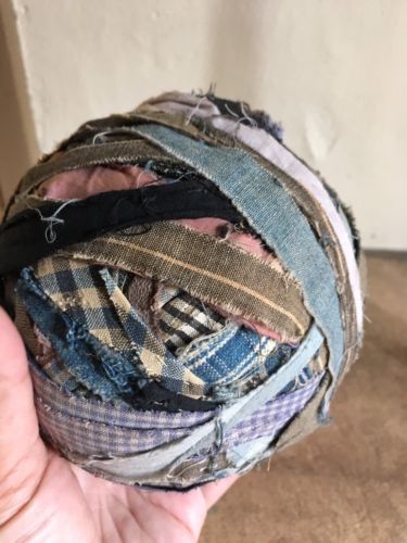 Title (ebay affiliate link): HUGE Early Antique Handmade Blue & Black Calico & Homespun Rag Ball AAFA #2
