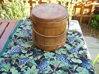 Title (ebay affiliate link): Vintage Primitive Wooden Firkin Maple Syrup Handled Bucket & Lid, As Is